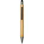 The Bamboo Quick-Dry Gel Ballpoint Stylus features a 100% bamboo barrel with gunmetal accents, creating a trendy understated look. It features a soft, rubberized capacitive touchscreen stylus and comes equipped with an ultra-smooth, quick-drying, semi-gel black ink cartridge. The pen and stylus operate using a simple click-action mechanism. The ballpoint pen tip measures 1mm and has an impressive writing length of 800m. 0.00″ D x 0.43″ W x 5.55″ H