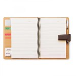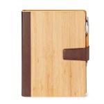 Bamboo and vinyl trim journal cover with vinyl lining, matching pen loop pen not included and a refillable spiral bound ECO journal containing 200 ivory lined pages Bamboo is a natural fiber, therefore noticeable shade variations and grain patterns may be apparent within orders of the same item. Due to our high standards of quality control, we must advise that slight irregularities in the bamboo of this item may result in imprint imperfections but are consistent with the natural look of the product. Journal inner page dimension is 5 15/16″ x 9″. 7″ L x 9.5″ W