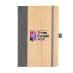 Cover Made From Post Consumer Recycled Materials And Bamboo Recycled Polyester (rPET) is Obtained By Melting Down Existing Plastic Bottles And Other Material Sources To Create New Polyester Fiber 80 Page Lined Notebook. 5.25″ W x 8.25″ H