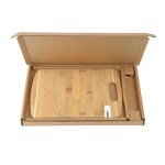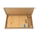 This two-tone bamboo board is naturally heat and bacteria resistant and features a built in knife sharpener. Best to hand wash with warm water and mild soap/detergent. Due to natural variations in the grain, laser engraved imprints may have slightly different shades. A tone on tone imprint is common with lasered bamboo. Comes in a 9 7/8″x13 7/8″x1 1/16″ gift box. Additional 5″x5″ left center imprint available on gift box. 12″ H x 9″ W x 3/4″ D