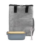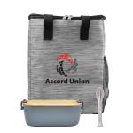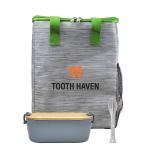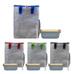 Eco-friendly Tote Cooler featuring vibrant accents for a stylish touch. Crafted with sustainable bamboo, the Lunch Box comes with an FSC-certified bamboo lid for added durability. Complete your set with a sleek cutlery trio including a Fork, Knife, and Spoon. Complies with FDA, Prop 65. 9.75″ L x 12″ H x 6″ W