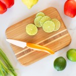 Part of the Caribbean Collection, the Barbados cutting board is distinctively attractive, super strong, and totally “green”! It offers a solid engrain inlay. It’s durable and made of sturdy bamboo which is 16% harder than a maple butcher block. Complies with Prop 65. 9″ L x 6 1/2″ W x 5/8″ Thick
