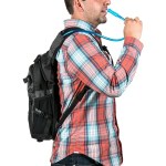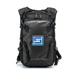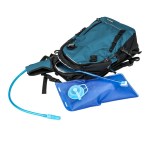 600D nylon/420D ripstop fabric hydration pack. Includes a 2 liter PEVA hydration bladder and tube with bite valve. Features a large main compartment with double hooked bladder pocket and space for other gear; a front compartment with interior organization; a small front zipper pocket; 2 side mesh pockets; adjustable shoulder straps and sternum strap; padded back with air channels; and reflective tape detailing. Keep yourself hydrated during any excursion! 4.5″ D x 17″ H x 10.5″ W
