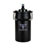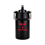 Nothing Small about it! Half gallon 64oz. Water jug. Copper lined; powder-coated; vacuum insulated. Metal handle with pad for soft carry. Easy twist of sip lid and wide lid. Additional screen print imprint options available: Side (2″ W X 2″ H) and body (3″ W X 2-1/2″ H). 4″ D x 9″ H