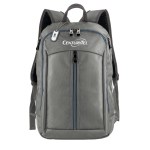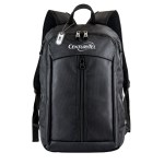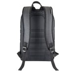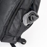 Sporty black 1680D cross-weave material; large front vertical zippered pocket; main compartment with dual-zipper closure; 2 side zippered catch-all pockets; padded top handle; adjustable shoulder straps. Fits most 14″ laptops. 4″ D x 18″ H x 12″ W