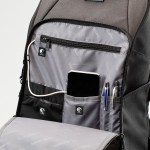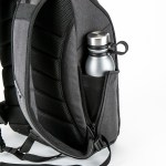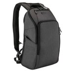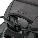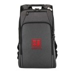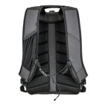 This is a heathered soft oxford/PU 100% polyester tech backpack. It features an architecture inspired design, crisscross elastic tech panel, two open mesh pockets, front full zip organizational pocket with wire pass through port on zipper pocket, and a side plastic cord keeper. There’s a top felted media pocket, two expandable side pockets, and Basecamp® step repeat pattern lining. Additional imprint locations: center front, left strap, top right strap, or bottom right strap. Complies with Prop 65. 5.5″ D x 19″ H x 12″ W
