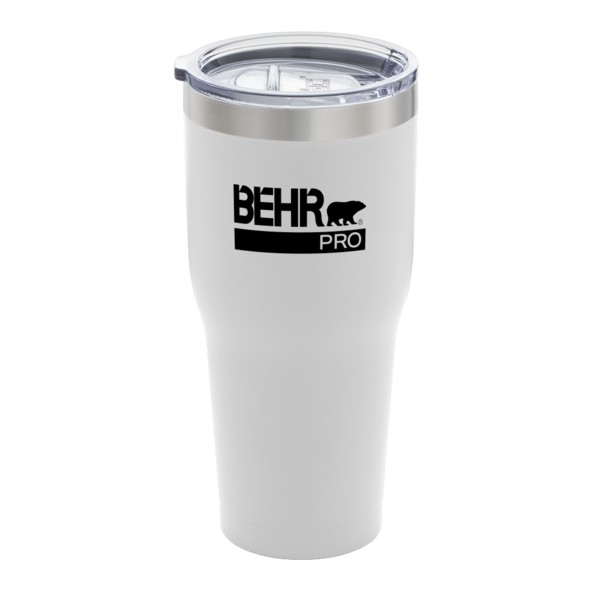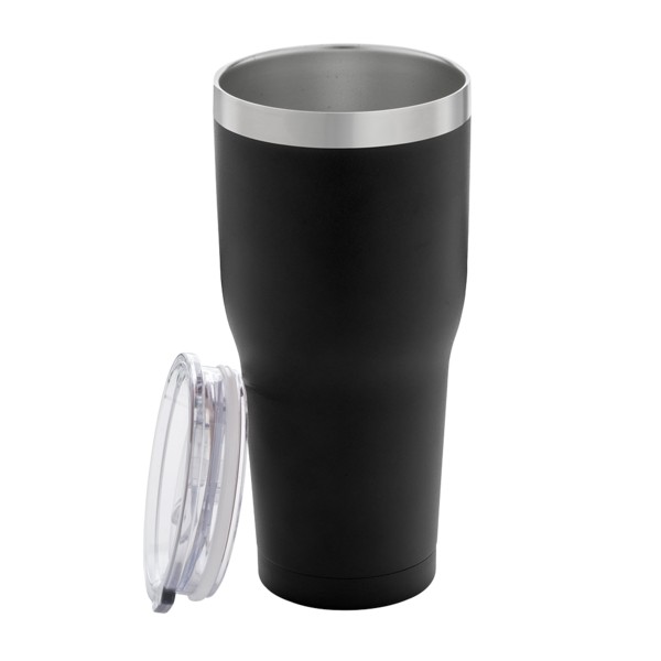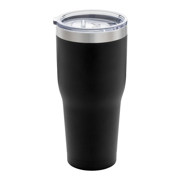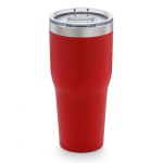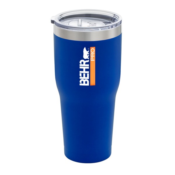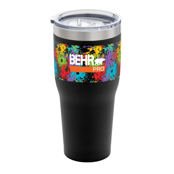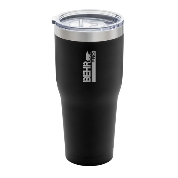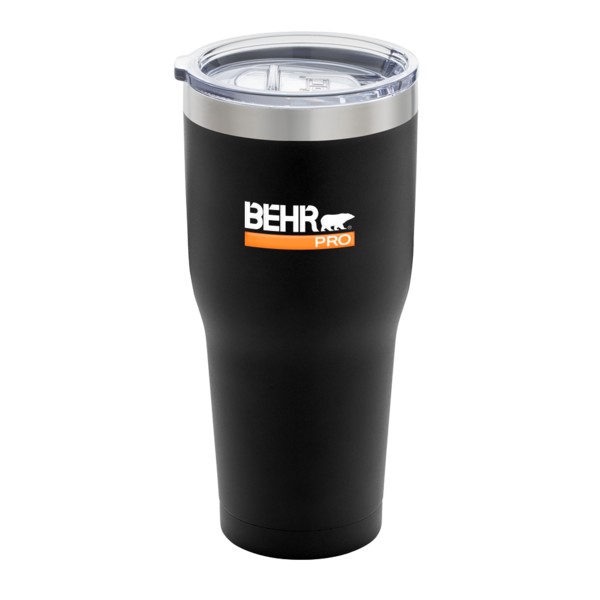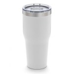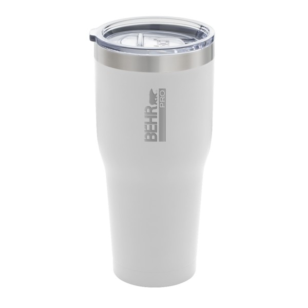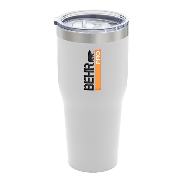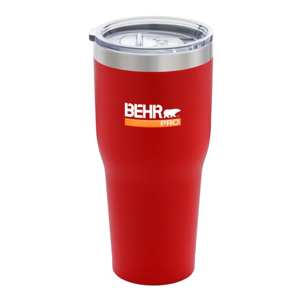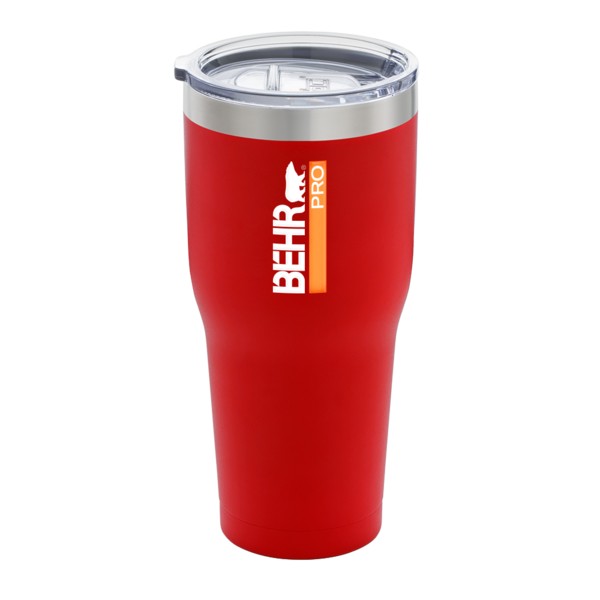 30 Oz. Vacuum insulated double wall tumbler with clear AS pressure lid. 18/8 powder coated stainless steel with copper lining; fits in standard cup holders. Not microwave safe; hand wash only. Packaged in retail box. 8.6″ H x 4.125″ W