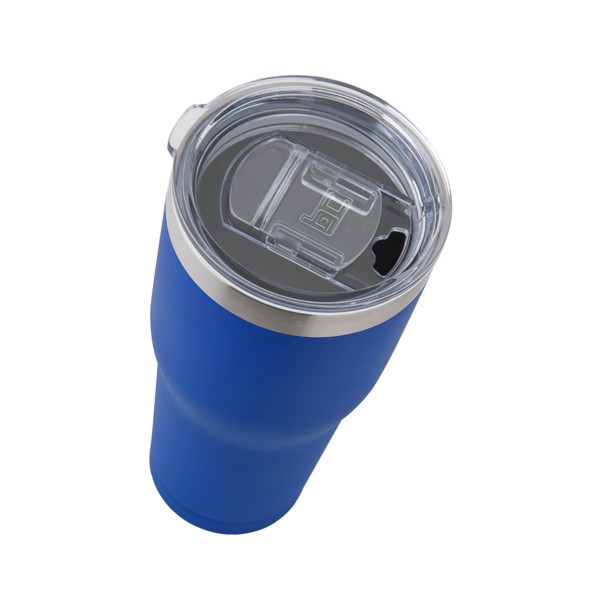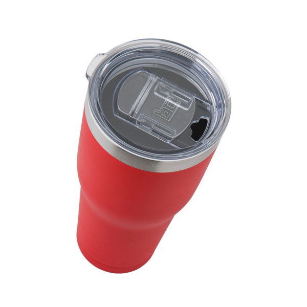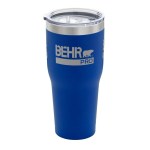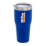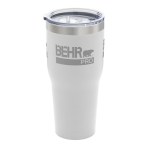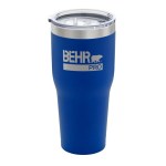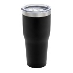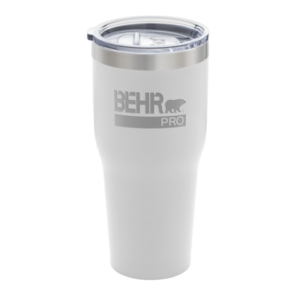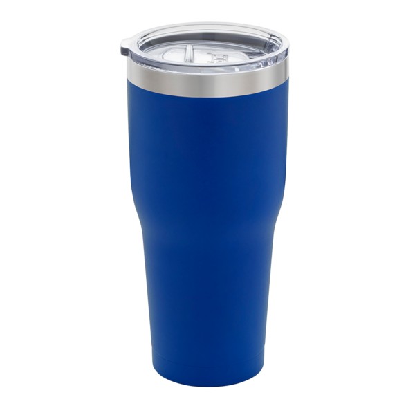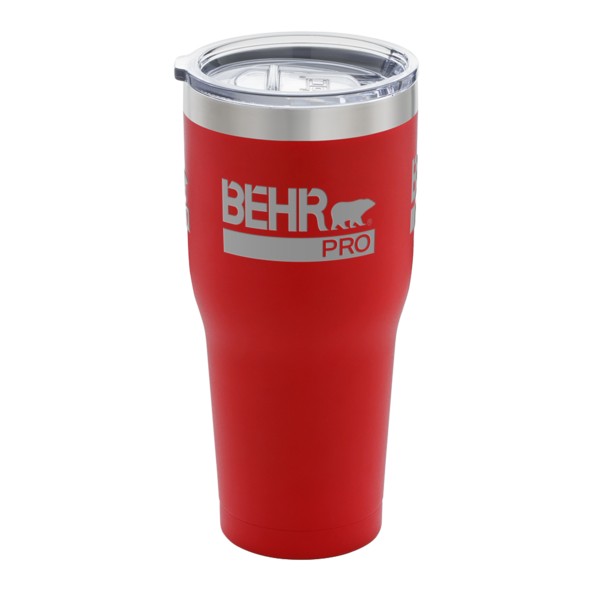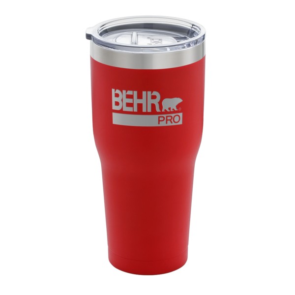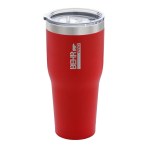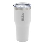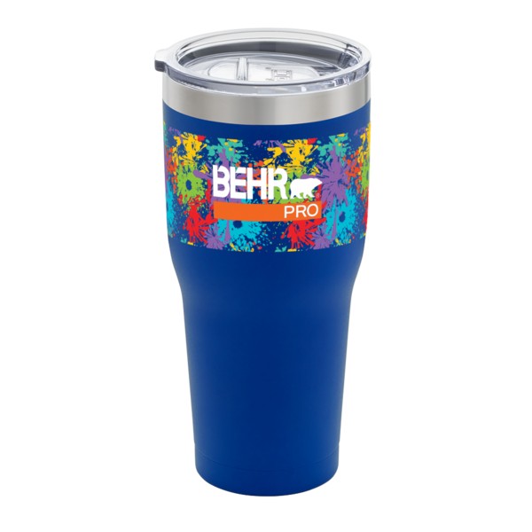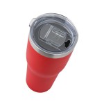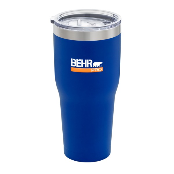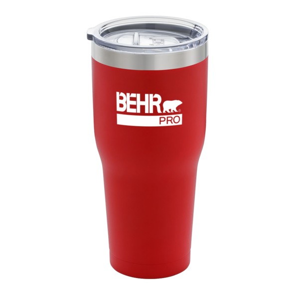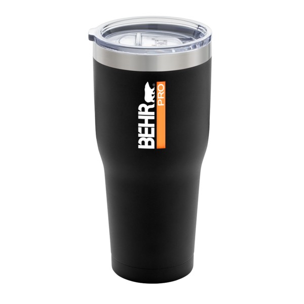 30 Oz. Vacuum insulated double wall tumbler with clear AS pressure lid. 18/8 powder coated stainless steel with copper lining; fits in standard cup holders. Not microwave safe; hand wash only. Packaged in retail box. 8.6″ H x 4.125″ W