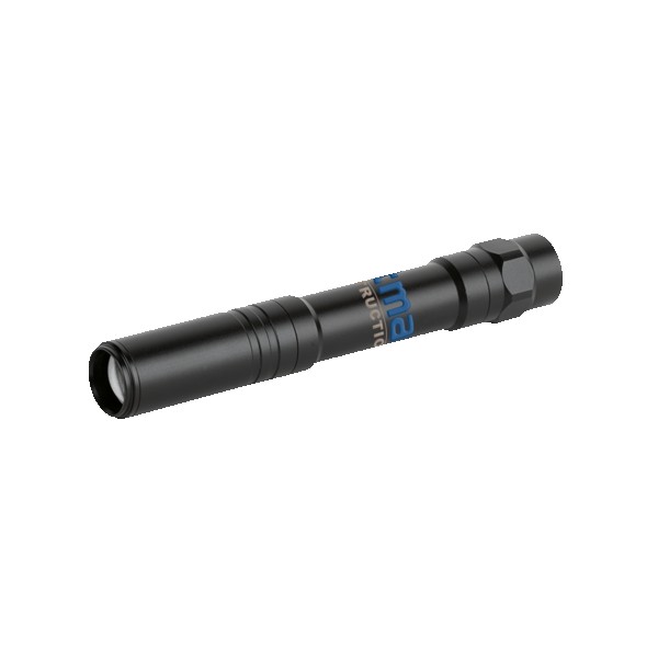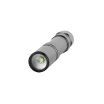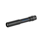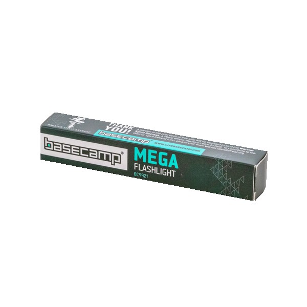 Ultra-bright LED flashlight. Aircraft grade aluminum housing with reduced rolling design and Basecamp logo push button; 220 lumen LED with three modes (high, low, strobe); push button tail on/high/low/strobe/off; extend head for focused light; requires 2 AA battery (included). 5.4375″ D x 0.8125″ W