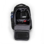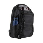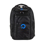 The everyday go anywhere backpack! With 6 pockets/compartments that include; laptop/Ipad® sleeves, plush lined pockets and easy organizational compartments you can’t go wrong! 1680D polyester with 150D polyester lining Dobby nylon, 600*300D/PVC 7P. Heavily padded back with trolley strap. Side compartments for any size drink. Additional heat transfer imprint locations available: Left side (3″W x 2″H), Front Panel (3″W x 3″H). Embroidery imprint option available on front panel (4½” Diameter). 18″ L x 14″ W x 6″ D