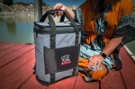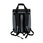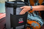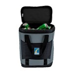 Wear your cooler! Water resistant tarpaulin with thick foam padded insulation. The handy front pocket made from 840D Polyester and comes with a padded backpack straps. Includes bottle opener on strap for easy use. Additional heat transfer imprint options available: Front Max (4 1/2″ W x 4 1/2″ H) or Jumbo on Top Lid (4″ W x 4″ H). Cooler had a 30 can capacity. 7.5″ D x 18″ H x 13″ W