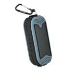 Rugged waterproof wireless speaker with built-in microphone. IPX6 waterproof, shock and dust resistant; carabiner; charge time: approx. 3 hrs.; playtime: approx. 5 hrs.; li-ion battery; charging cable included. 2.6875″ D x 2.25″ H x 6.875″ W