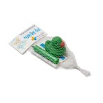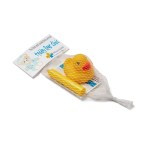 Fight back against the boredom of bath time for your kids with the help of this dynamic duo! This set features a bathtub crayon to allow young Picassos to draw on tubs and tile walls while bathing, and an adorable rubber duck for companionship. This cool kit comes in a white mesh bag with a full color custom header card. Crayon markings wash away easily with a sponge and water. Complies with CPSIA.
