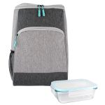Introducing the Bay Cooler Backpack, featuring a convenient full-top opening for easy access to all your refreshments. Complete with a sleek Glass Container equipped with a secure snap-on lid to keep your drinks fresh and spill-free. Perfect for picnics, beach days, or any outdoor adventure. Stay stylish and organized with this must-have duo for all your on-the-go hydration needs. Complies with FDA, Prop 65. 10.25″ L x 5.5″ W x 15.5″ H