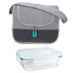 Introducing the stylish Bay Cooler Bag featuring vibrant zipper pulls for a pop of color. Keep your food fresh and cool in this trendy bag, perfect for any outing. And don’t forget the Glass Container with a convenient snap-on lid, ideal for storing your favorite snacks or meals. Stay organized and stylish on the go with this perfect duo. Complies with Prop 65. 9.5″ L x 8″ W x 7.5″ H