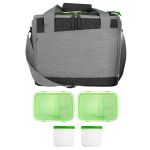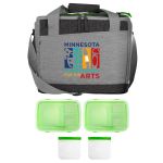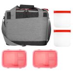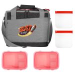 Introducing the Bay Picnic Cooler Bag featuring a vibrant bungee for added style. This set includes two Lunch To Go Containers with convenient clip tops for easy access to your meals on the go. Additionally, you’ll receive two Reusable Sandwich Bags with secure zip closures, perfect for keeping your sandwiches fresh and delicious. Make every picnic or lunch outing a breeze with this practical and stylish set. Complies with FDA, Prop 65. 13″ L x 11″ H x 7″ W