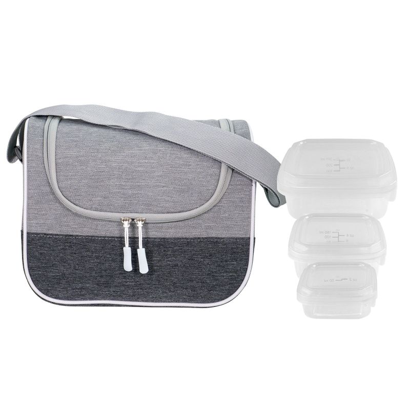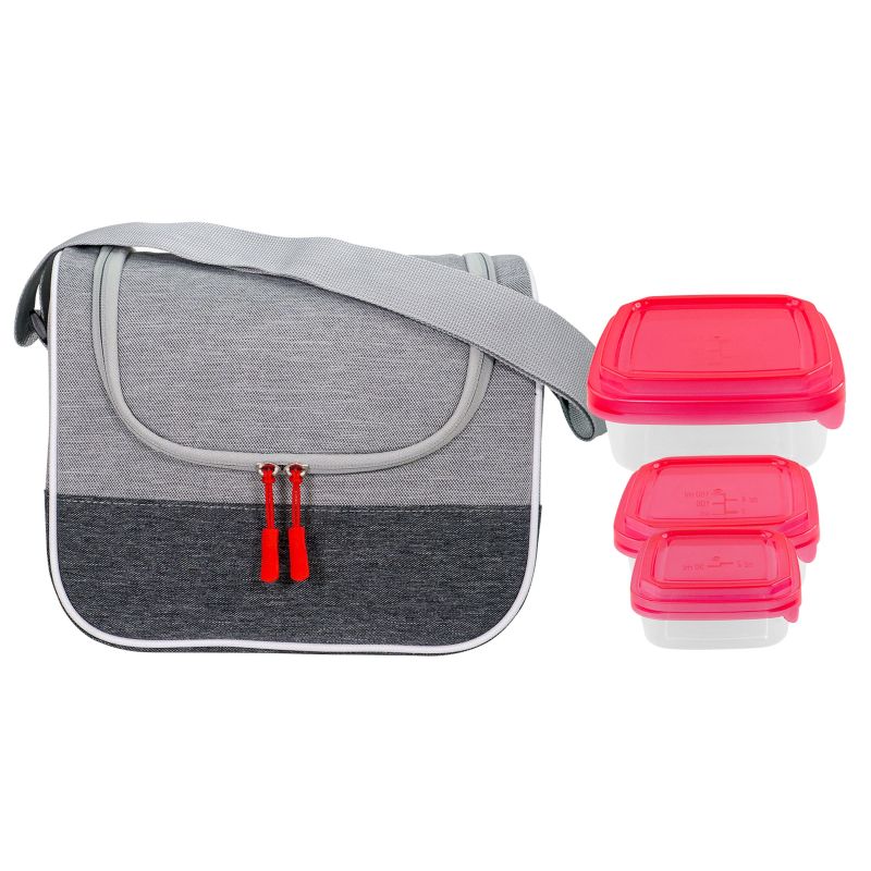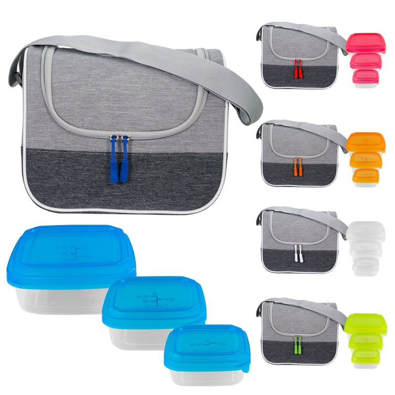 Bay Cooler Bag (CPP-5731) with colorful zipper pulls. Square Portion Control (CPP-3890) for healthy portions. Imprint on additional items available, see Terms and Conditions. Complies with FDA, Prop 65. 9.5″ L x 7.5″ H x 8″ W