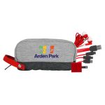 Introducing the Bay Line Travel Pouch with a vibrant accent hand strap for added style and convenience. The UL Square USB Wall Charger is not only UL Listed, but also boasts a patented design for top-notch safety and reliability. Elevate your travel experience with our colorful travel earbuds, perfect for listening to your favorite tunes on the go. Stay connected with our colorful 3-in-1 charging cable, featuring a multiple USB adaptor for ultimate versatility. This cable is compatible with IOS devices, Micro USB, and Type C USB, ensuring you can charge all your devices with ease. Travel in style and stay connected with our innovative and colorful tech accessories. Complies with CE, cUL, FCC, Prop 65, UL. 8″ L x 3.5″ W x 4.5″ H