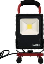 1-year limited warranty Bulb Type: Single 20W LED Multi-angle tilt and swivel fixture design Includes 6′ SVT 18/3 cord with grounded plug (AC power) Comfort-grip padded handle Aluminum construction with powder coated finish, tempered glass lens Output: 2,200 lumens Certification: cETLus Single sealed push button switch Multi-fin heat sink keeps light cool to the touch. 12.6″ D x 6.2″ W x 6.4″ H