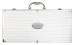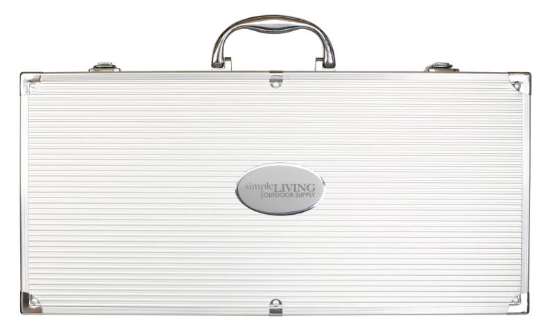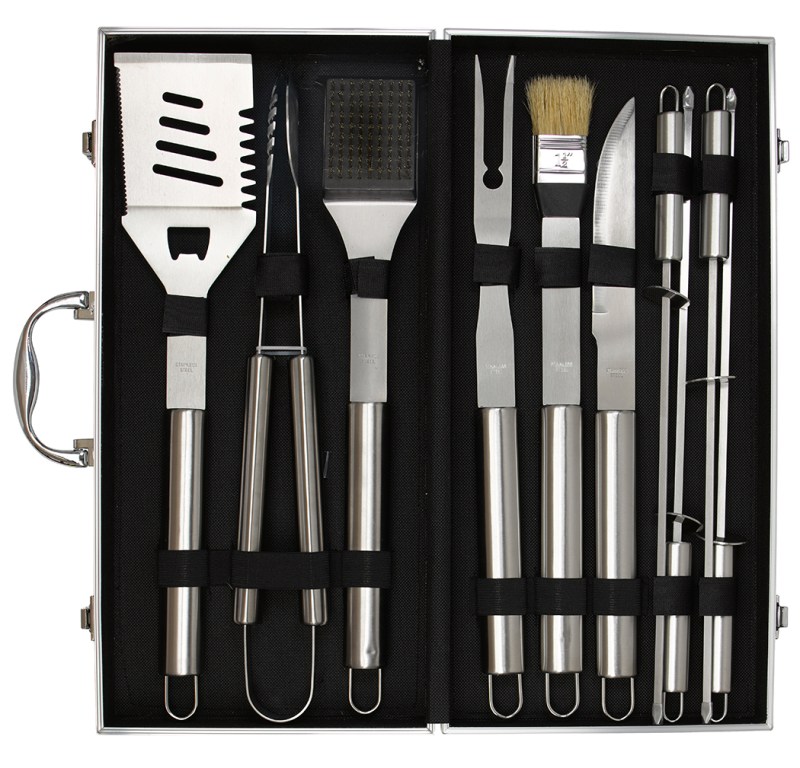 Perfect for your next BBQ, this 10-piece set has everything you need, including tongs, spatula, fork, basting brush, and 4 skewers. And, you can store it all away easily in its sturdy carrying case. 18.875″ W x 3.25″ H x 8.25″ D