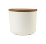 Ready to meet your culinary storage needs, this striking, but simple ceramic container is designed to store your kitchen staples in style. We love using them for everything from coffee to sugar, making it our go-to for any other cooking or baking goods. Accented by the rich warm grain of the sustainably-sourced acacia wood lid, they have a silicone ring to retain the freshness of whatever you choose to store inside. These containers are also great for organizing desktop and home essentials. Complies with CPSIA, Prop 65. 3.75″ H x 4″ L