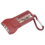 Easy to hold wide flat design with incredibly bright 4 LED white lights. Easy thumb click on, click off switch. Carabiners easily clips onto backpacks, bags and belts. Also available with a Full Color Imprint!. Complies with CPSIA, Prop 65. 3 5/8″ W x 1 1/2″ H