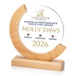 Celebrate achievement with the Beech Eclipse Award, where modern design meets natural warmth. This standout piece showcases a circular Starfire crystal center framed by a partial beechwood ring. The crystal is securely set on a coordinating beechwood base, creating a cohesive presentation that feels elevated and timeless. Please note that natural wood material will vary in grain. 7.75″ W x 8.5″ H x 2″ D
