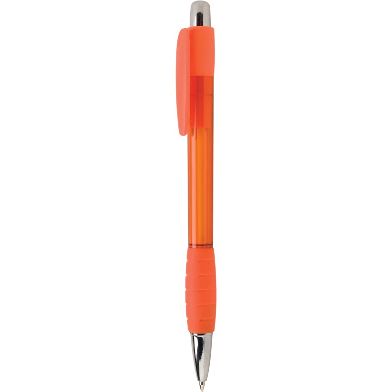 Contemporary styling with a slim outline. Hot translucent colors with matching ribbed comfort grip & chrome accents. Available with blue or black ink. (Blue ink default). Complies with Prop 65. 5.5″ L x 0.39″ Diameter