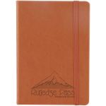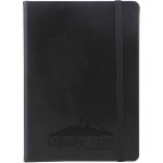 The Bella Luna Journal is Trendy and Affordable and Now in a Smaller Size! Features a soft faux leather cover. Stylish elastic loop closure and ribbon bookmark. 80 sheets (160 ruled pages) and document pocket on inside back cover. Custom, debossed imprint to display your company message beautifully. Complies with Prop 65.