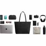 A clever carry-all designed to go from workdays to overnights, market runs to international travel, this bag features a padded internal laptop sleeve for devices up to 13″, redesigned pop pockets that hold bottles, shoes, or umbrellas and disappear when not in use, and a wide-mouth opening with a full-width zip closure for secure yet easy access. A front zip pocket keeps valuables close at hand, while a built-in key clip with a ribbon loop adds everyday convenience. Soft padded webbing straps wi. 5.10″ D x 18.50″ W x 14.20″ H