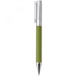 This heavyweight, twist action brass ballpoint has a chrome upper barrel and a vinyl wrapped lower barrel. Its sleek silhouette, hinged clip and German ink refill make it fit for an executive, but with a pop of color. This addition to the Donald collection provides endless possibilities of pairing to create fashionable gift sets. 5.5″ L