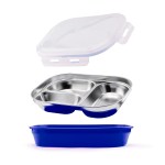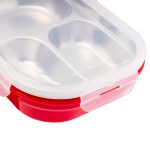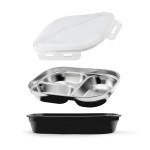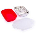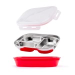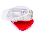 Bento-styled stainless steel lunch container solution offers safe and durable. On-the-go meal and snack packing. 3 practical compartments portioned perfectly for on the go. Heatable by adding hot water, pour 1/3 boiled water to the bottom box, fasten the lid, and it takes only minutes to heat up. Before closing the lid, open the air hole counterclockwise. After closing the lid, tighten the air hole clockwise. Dishwasher safe. This bento lunch box is made up of 3 parts – seal cover (with a hidden compartment for cutlery and microwavable outer layer. For a super-simple cleanup, just toss your bento lunch box and lid in the dishwasher. Non-toxic, reusable & eco friendly. Complies with ASTM, CPSIA, C-TPAT, FDA. 10.375″ L x 7.625″ W
