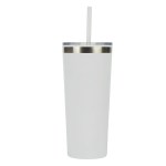Designed to be lightweight yet durable, the Bergen 24 oz. Tumbler is ideal for everyday use. Its ergonomic shape fits comfortably in your hand and fits most standard car cup holders, making it a perfect companion for your daily commute, office environments, or outdoor adventures. This reusable tumbler features a double wall construction with stainless steel exterior and an eco-friendly 100% recycled polypropylene inner wall. The push-on translucent lid features a spill-resistant slider closure allowing you to confidently take your tumbler on the go and the included drinking straw provides you a hassle-free drinking experience even when you are on the move. FDA compliant and BPA Free. Complies with Prop 65. 3 5/8″ W x 10 1/4″ H x 3 1/2″ D