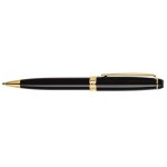 Ballpoint with high gloss lacquered finish with highly polished gold accents. Twist-action mechanism, solid heavyweight brass. Complies with Prop 65. 5/8″ W x 5 1/4″ H x 1/2″ D