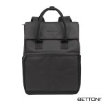 The Bettoni Classico Handled RPET Backpack seamlessly blends style and functionality. Its durable and fashionable twill fabric is sustainably made from recycled water bottles providing water-resistant protection. This bag has a top flap with double magnet closure and its spacious main compartment has a secure zippered closure, padded 15.6″ laptop pocket and organizer pockets. Bag expansion, facilitated by two side snap buttons, provides flexibility in storage capacity. Stretch-mesh side pockets, zippered front and top pockets provide extra storage options for all your accessories. Carry handles feature a snap button wrap for a secure grip, and the padded back and adjustable backpack straps ensure comfortable carrying. With an integrated trolley band, this bag effortlessly attaches to luggage during travel. Explore a new level of convenience and style with the Classico Handled Backpack. Complies with Prop 65. 12″ W x 14 1/2″ H x 5″ D