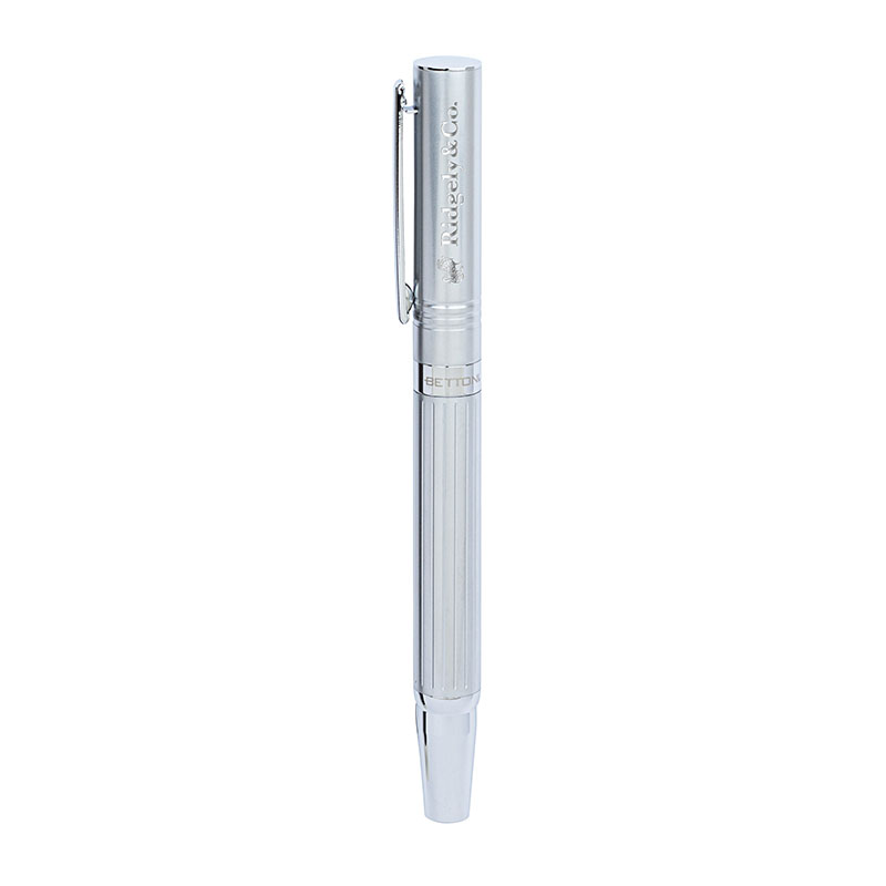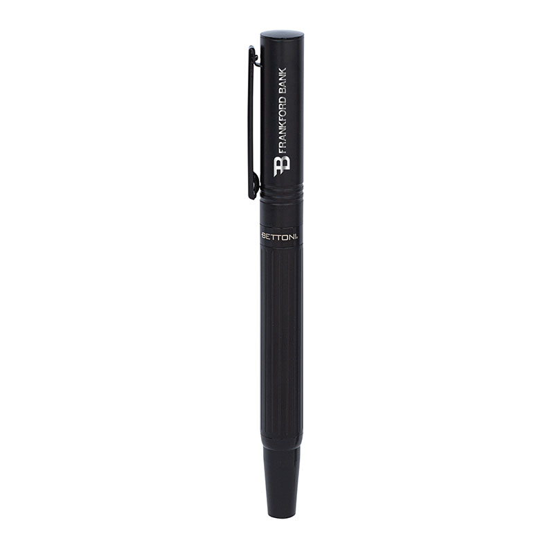 The Bettoni Messina Brass Rollerball Pen is available in black or silver and features a matte finish cap and barrel with gloss finish trims. It has a well balanced weight, cap-off design and a German-made rollerball black ink refill. The Messina has an elegant and modern design that will complement any user’s workspace. Complies with Prop 65. 5″ W x 5/8″ H x 1/2″ D