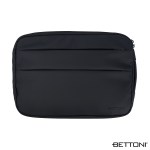 Crafted for the modern professional, the Bettoni Moda Milano 15.6″ RPET Laptop Sleeve combines refined elegance with thoughtful functionality and sustainable design. Made with a water-resistant, durable RPET exterior, the interior is fully lined with ultra-soft fleece and dense foam padding that gently cradle your laptop, safeguarding it from scratches and minor bumps in luxurious comfort. Two concealed front pockets with smooth metal zippers provide discreet, secure storage for your business essentials, keeping everything organized and within easy reach. A sturdy reinforced side handle ensures effortless grab-and-go portability, perfect for quick meetings or commuting between offices. With its premium, elegant business style, and eco-conscious craftsmanship, this sleeve effortlessly complements professional attire and elevates your everyday carry, makes it an ideal companion for the modern professional who values both style and sustainability. Complies with Prop 65. 15 3/4″ W x 11″ H x 1 3/4″ D