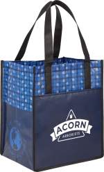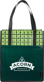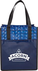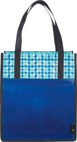The Big Grocery Laminated Non-Woven Tote features a large open main compartment and a supportive bottom board. The open front pocket provides extra storage for essentials. The trendy eco-print pattern supports environmentally friendly promotions and is also ideal for grocery shopping, beach trips and other outdoor events. Its laminated material is water resistant and easily wipes clean. The 10” polypropylene non-woven reinforced drop handles feature binding for added durability. This tote is available in multiple colors and makes a perfect, reusable alternative to plastic bags for shopping. This tote was previously Leed’s 2160-38, Big Grocery Laminated Non-Woven Tote. Material: 110g Laminated Non-Woven Polypropylene Available in a variety of colors Large open main compartment Supportive bottom board Trendy eco-print pattern Reusable option Easy clean & water-resistant laminate 10” reinforced drop handles Reusable option. *Note – this tote does not include a bottom board. 10.00″ D x 13.00″ W x 15.00″ H