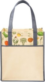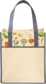 The Big Grocery Vintage Matte Laminated Non-Woven Tote has a vintage print design featuring organic veggies and antique kitchen utensils. The tote features a large open main compartment with a supportive bottom board. There is an added contrasting regular polypropylene front open pocket for additional storage. Its matte laminated material is water resistant and easily wipes clean. The 10”” reinforced drop handles feature binding for added durability. This tote makes a perfect, reusable alternative to plastic bags for shopping. This tote was previously Leed’s 2160-48, Big Grocery Vintage Matte Laminated Non-Woven Tote. Material: 110g Laminated Non-Woven Polypropylene Vintage print design Large open main compartment Supportive bottom board Front open pocket with contrasting design Easy clean & water-resistant laminate 10” reinforced drop handles with durable binding Reusable option. 10.00″ D x 13.00″ W x 15.00″ H