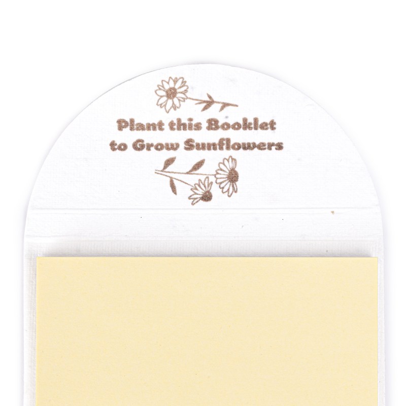 Eco-friendly sticky note pad with a 300gsm sunflower seed paper cover and 70gsm paper stickers. Includes 25 sheets per color for sustainable organization. 3″ W x 3″ H x 28/100″ L