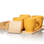 Elevate your beverage experience with this elegant gift set featuring four beautifully crafted bamboo coasters nestled in a matching bamboo holder, paired perfectly with a set of four stylish Bistro mugs. Ideal for any occasion, this set brings a touch of natural sophistication to your home or office.