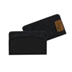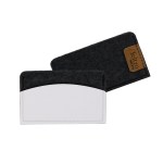 Simple saddle stitched recycled leather and felt holder ; can be created solid color or Duo-tone with matching or Improve your networking efforts in a flash with help from this leather and felt business card holder! Available in several colors (pick leather color with solid black felt) and measuring 3.75″ x 2.25″, this handy case holds several cards + 1 easy access leather pocket in front. What an outstanding giveaway for banks, communication agencies, hotels and more! Complies with FSC, Prop 65. 3.75″ L x 2.25″ W