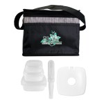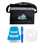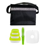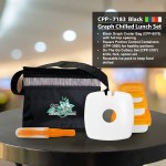 Stay stylish and organized with our Black Graph Cooler Bag featuring a convenient full top opening. Our Square Portion Control Containers are perfect for keeping your portions in check and promoting healthy eating habits. The On The Go Cutlery Set includes a knife, fork, and spoon, making it easy to enjoy your meals anywhere. And with our reusable ice pack, your food will stay perfectly chilled throughout the day. Complies with FDA, Prop 65. 8″ L x 7″ H x 6″ W