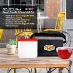 Introducing the sleek and stylish Black Graph Cooler Bag featuring a convenient full top opening for easy access. Keep your meals fresh and cool on the go with this must-have accessory. Enjoy your favorite noodle soups on the move with our innovative Noodle Bowl soup container, complete with a secure locking lid to prevent any spills. Say goodbye to soggy sandwiches with our Reusable Sandwich Bag, designed with a practical zip closure for ultimate freshness. Elevate your lunch game with these essential items that combine functionality with modern design. Perfect for busy individuals who want to enjoy delicious meals wherever they go. Complies with FDA, Prop 65. 8″ L x 7″ H x 6″ W