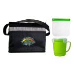 The sleek Black Graph Cooler Bag features a convenient full top opening for easy access. The Soup Mug is designed with a comfortable handle for on-the-go enjoyment. Keep your sandwiches fresh and secure in the Reusable Sandwich Bag, complete with a reliable zip closure. Complies with FDA, Prop 65. 8″ L x 7″ H x 6″ W