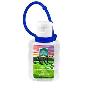 FDA Compliant 1.0 oz hand sanitizer antibacterial gel with silicone carry leash (ships unattached) Citrus Scented. Available with Spot Color of Full Color Imprint. Material: PET Plastic w/Polypropylene Plastic Cap. Note: Bulk packed; straps shipped unattached bulk in polybag. For strap attachment add 0.25 (G) each and add 3 production days. Specification Note: Sanitizers are sold for immediate use. Factory cannot be responsible if stored and not distributed within 30 days of sale. 1 3/8″ W x 3″ H