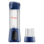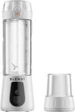 Power: 120W No mess, easy to drink spout top Rechargeable – a full charge provides 10 to 15 (20-second blend) times Travel bottle bottom converts cylinder into a 17.5oz water bottle 6 Stainless steel blades Includes 2 attachments: travel bottle conversion bottom, blade cover, charging cord, and carrying strap Self-cleaning – add dish soap, water and run the blades Not dishwasher safe Blade cover protects and safeguards exposed blades Cordless, portable and powerful blender Compact and. 3″ D x 3″ W x 10″ H