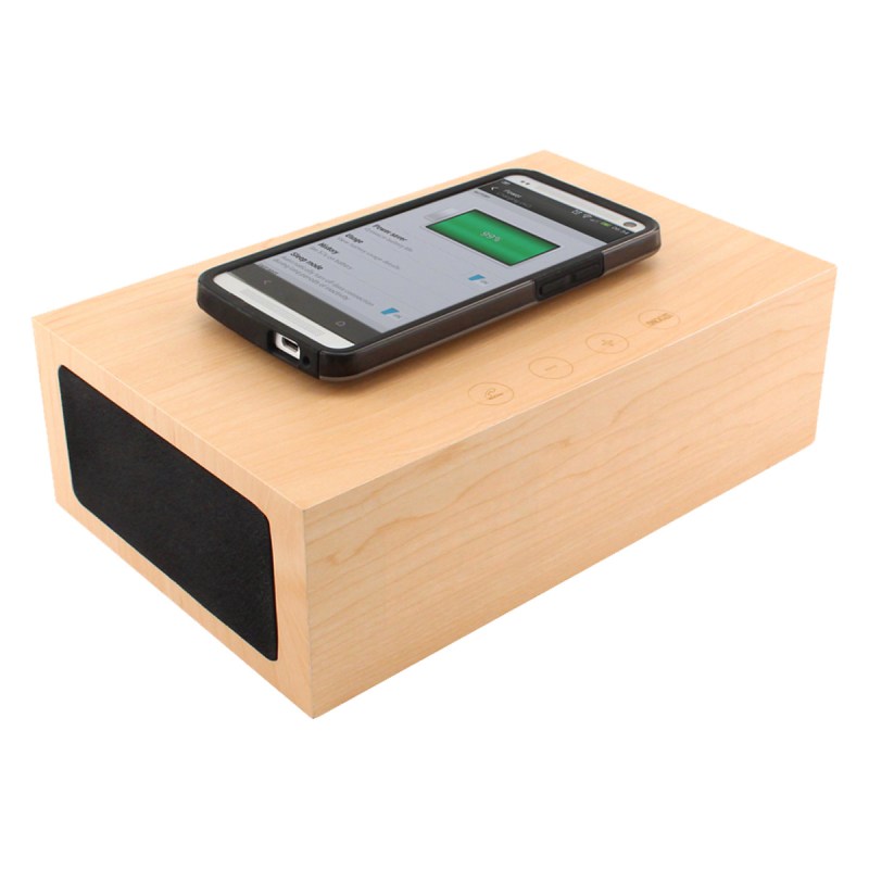 Charge Qi Enabled Devices Wirelessly By Placing Compatible Device On Top Of Power Bank. Wireless Speaker Featuring High Definition Bluetooth® 2.1+EDR Technology. Simply Pair With Your Device To Enjoy Dynamic Stereo Sound. Complies with Prop 65. 2.6″ D x 8.75″ W x 5.5″ H