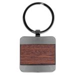 This contemporary accessory blends gunmetal-plated metal with a rectangular wooden centerpiece, creating a statement piece that’s both modern and earthy. Metal is a zinc alloy with gunmetal plating and a rectangular design. Key chain features a rosewood in a clear finish. 35mm split ring also with gunmetal plating. Complies with Prop 65. 1 1/4″ W x 3″ H