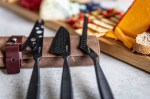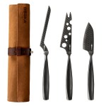 The Boska Cheese Knife Set Monaco+ Dark is designed for those who appreciate exceptional craftsmanship and presentation. This three-piece set includes knives for soft, semi-hard, and hard cheeses-each crafted from stainless steel with a titanium non-stick coating for smooth slicing. Finished in sleek black and paired with a brown leather storage case, it’s a timeless, high-quality gift for cheese lovers and entertainers alike. Complies with CPSIA, Prop 65. 2.68″ W x 0.24″ H x 10.24″ L